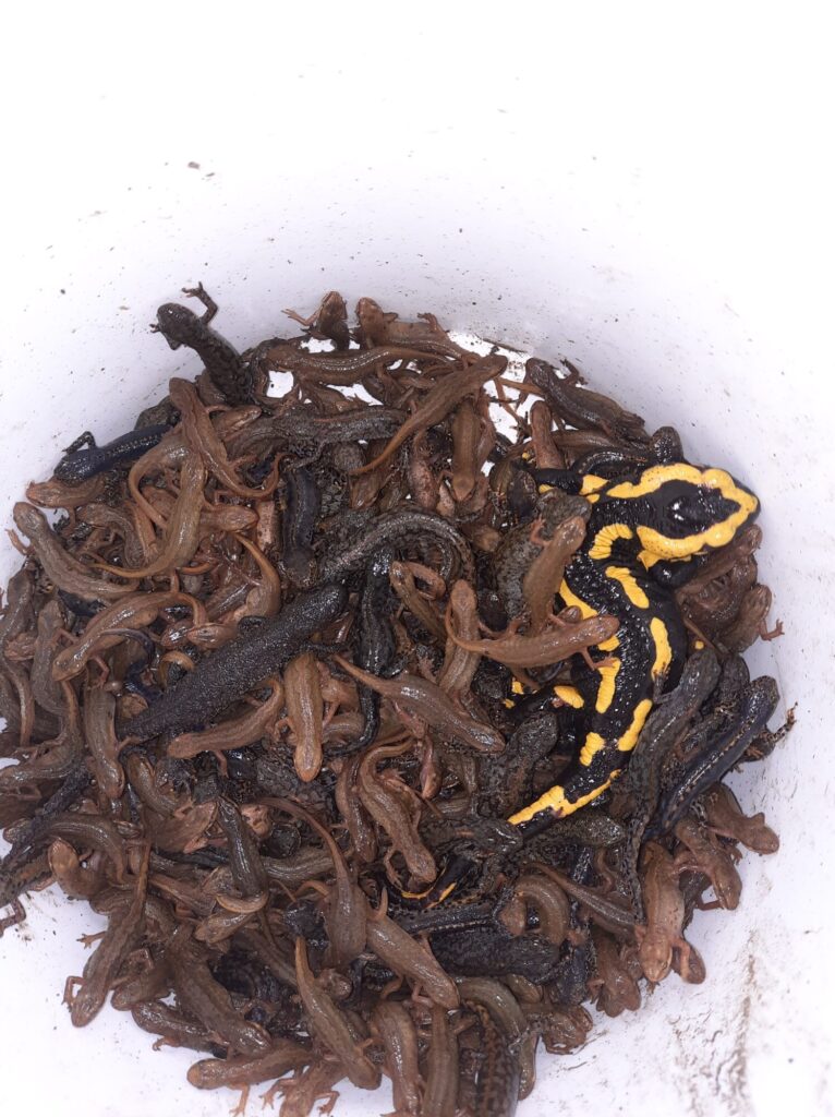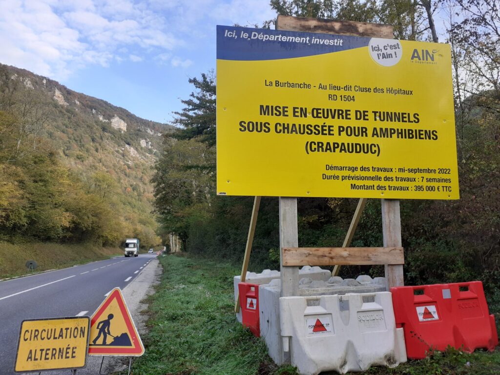 Côté amphibiens, des filets sont posés chaque printemps au bord de certaines routes pour protéger de l’écrasement routier notamment des grenouilles, crapauds, tritons et salamandres en migration. Tous les jours, les bénévoles se relaient pour aller ramasser les amphibiens et leur faire traverser la route en direction de leur mare de reproduction. Ces actions de sauvetage ont conduit à la création d’ouvrages sous les routes (crapauduc) sur deux sites (Vesancy, La Burbanche) grâce à l’accompagnement du département de l’Ain qui nous soutient pour ces campagnes de sauvetage depuis de nombreuses années.