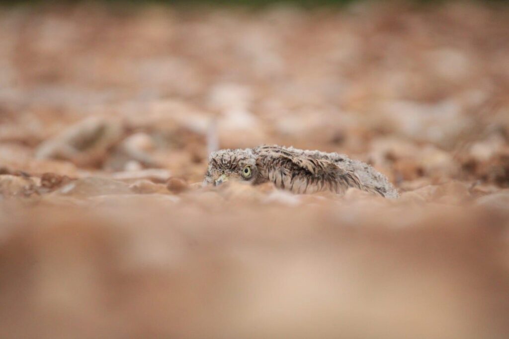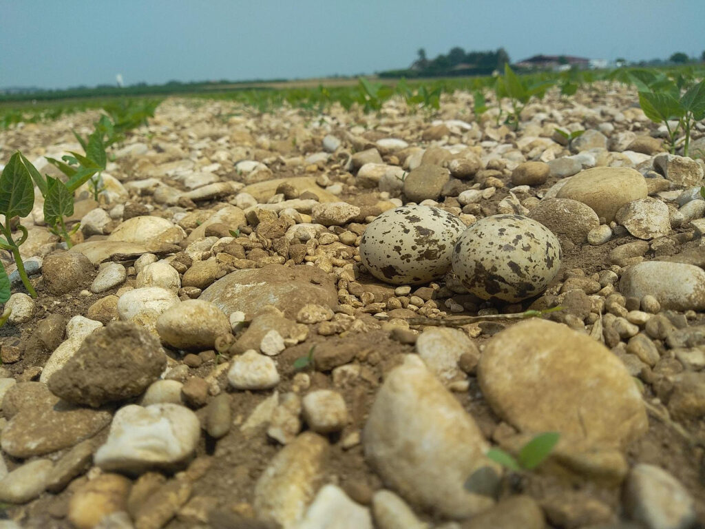 L’Œdicnème criard niche à terre, dans les milieux ouverts au sol minéral et peu végétalisé. Dans la plaine de l’Ain, on le retrouve en grande majorité dans les parcelles cultivées avant que les semis ne soient trop hauts. Malheureusement, le passage des engins pour préparer le sol aux plantations entraine souvent la destruction (involontaire) des nids.