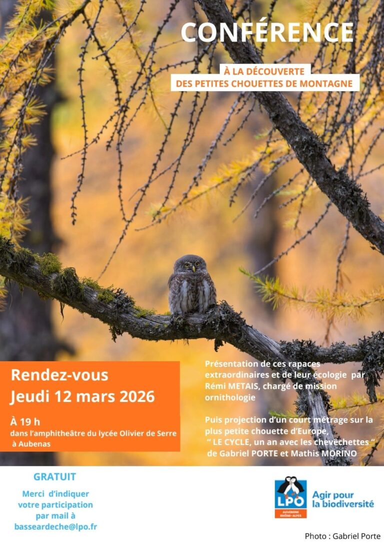 Le groupe local Basse Ardèche de la LPO vous invite à une soirée dédiée aux Petites Chouettes de Montagne, ces rapaces nocturnes aussi fascinants que discrets.