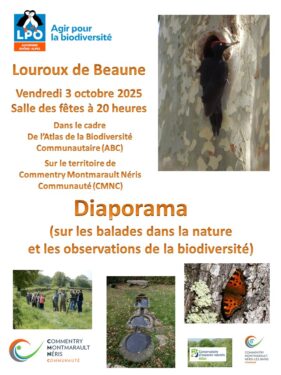 Le groupe bénévoles LPO Montluçon anime une soirée diaporama sur l’Atlas de la Biodiversité Communautaire de Commentry Montmarault Néris Communauté à 20 h 00 le vendredi 3 octobre à la salle des Fêtes de Louroux de Beaune avec la présence du CEN.