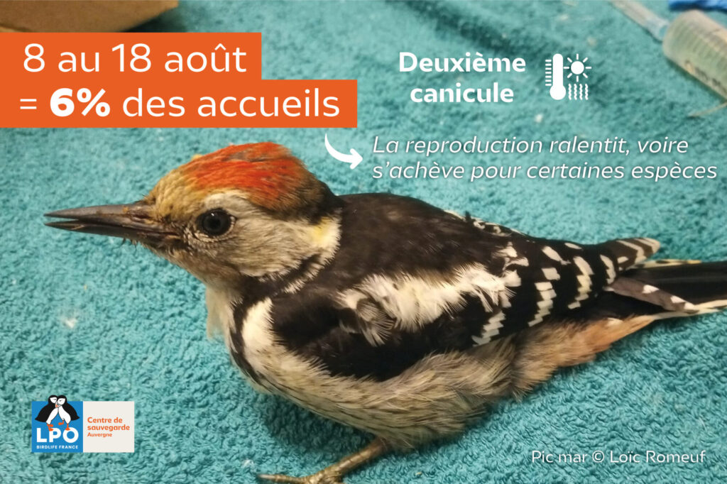 De plus, en juin, tout le monde n’est pas encore parti en vacances et par conséquent, les oiseaux sont plus susceptibles d’être trouvés et emmenés au Centre. En août, la reproduction ralentit, voire s’achève pour certaines espèces, et la présence humaine locale diminue également à cause des congés.