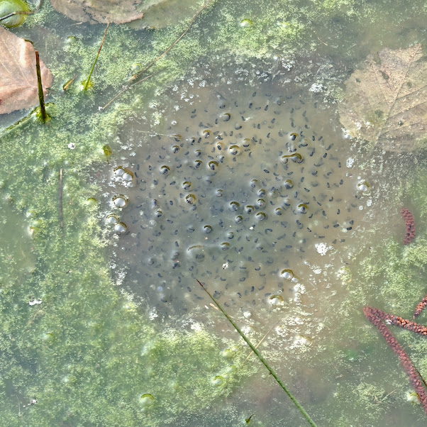 Les mares sont remplies de pontes de grenouilles agiles et rousses ! Saviez-vous que les femelles de Rana temporaria (grenouille rousse) peuvent pondre entre 700 et 4500 œufs ? Leur ponte est généralement déposée dans des eaux peu profondes, souvent sur la végétation aquatique, où elle forme une masse gélatineuse visible près de la surface.