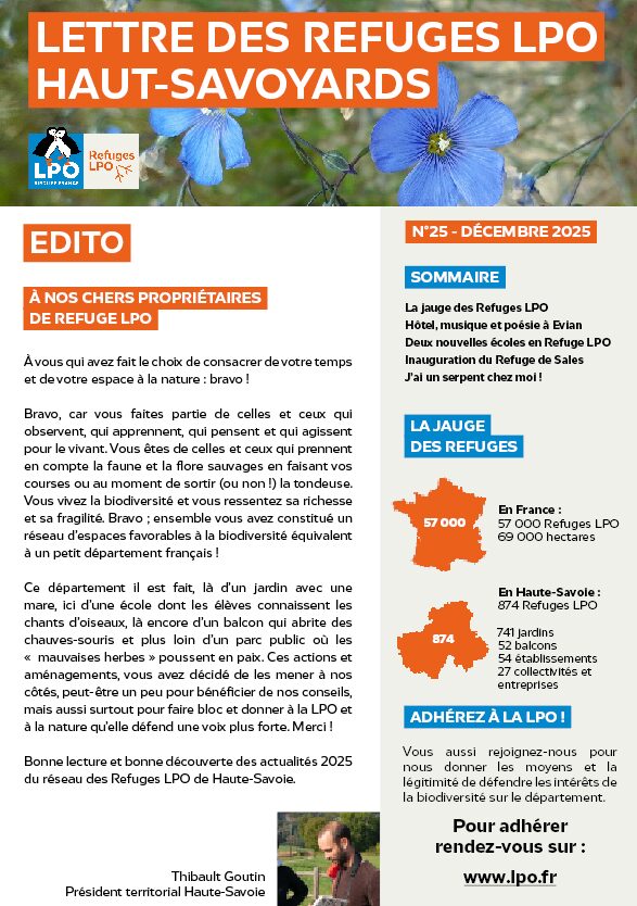 Retrouvez les nouvelles de l’année 2025 concernant les Refuges LPO haut-savoyards !