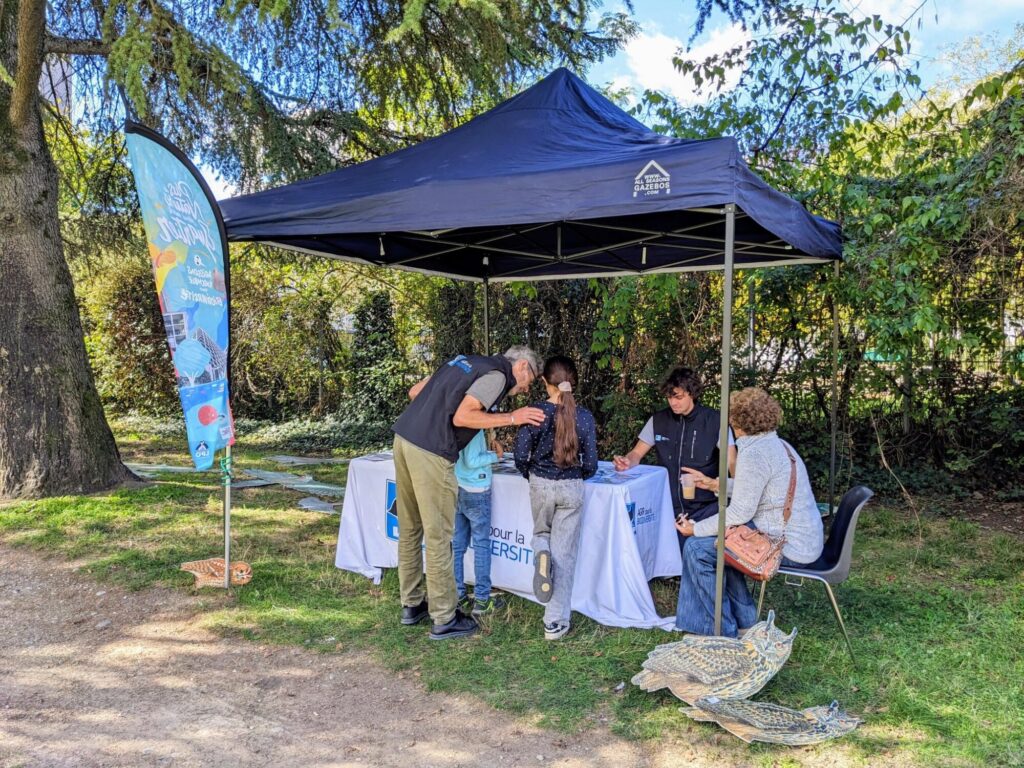 Le 4 octobre dernier, à l’occasion de la « Déchetterie mobile » — un événement annuel du quartier — la LPO a rencontré les habitants pour la première fois. Deux salariés étaient présents sur un stand pour présenter le programme et initier petits et grands à l’observation des oiseaux.
